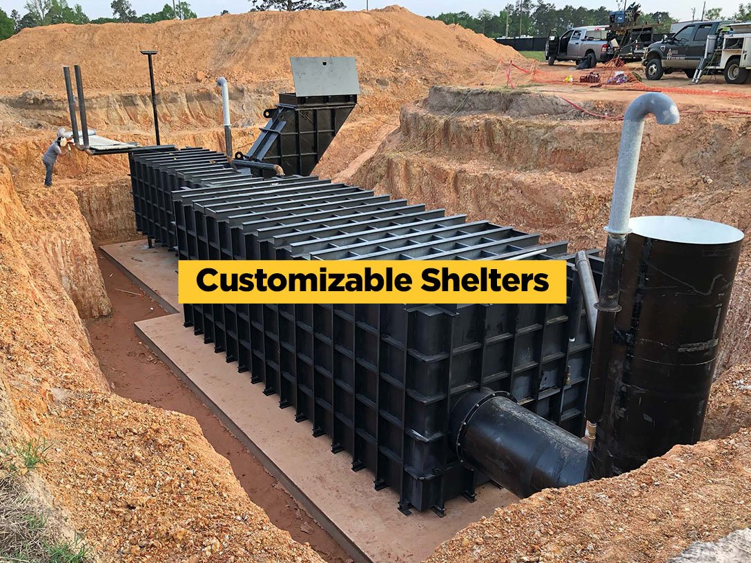 Multiple options including safe rooms, modular shelters, and large bunker systems.